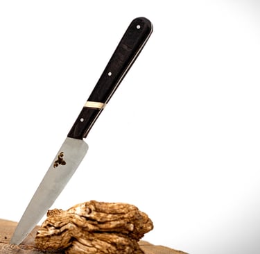 La beauté de l'artisanat du bois réside dans la richesse des essences, qu'elles soient exotiques ou françaises, chacune ayant une histoire et une personnalité unique. Mon amour pour la précision et le travail bien fait se reflète dans la création de couteaux personnalisés, conçus non seulement comme des outils fonctionnels, mais aussi comme des œuvres d'art. Les couteaux de cuisine, en particulier, sont essentiels pour sublimer notre expérience culinaire, rendant la préparation des repas à la fois agréable et efficace. Les planches à découper, souvent négligées, deviennent de magnifiques supports où l'art de la découpe se mêle à l'esthétique du bois. En partageant cette passion, je souhaite éveiller chez chacun une appréciation pour ces objets du quotidien, qui allient beauté, fonctionnalité et héritage artisanal.
